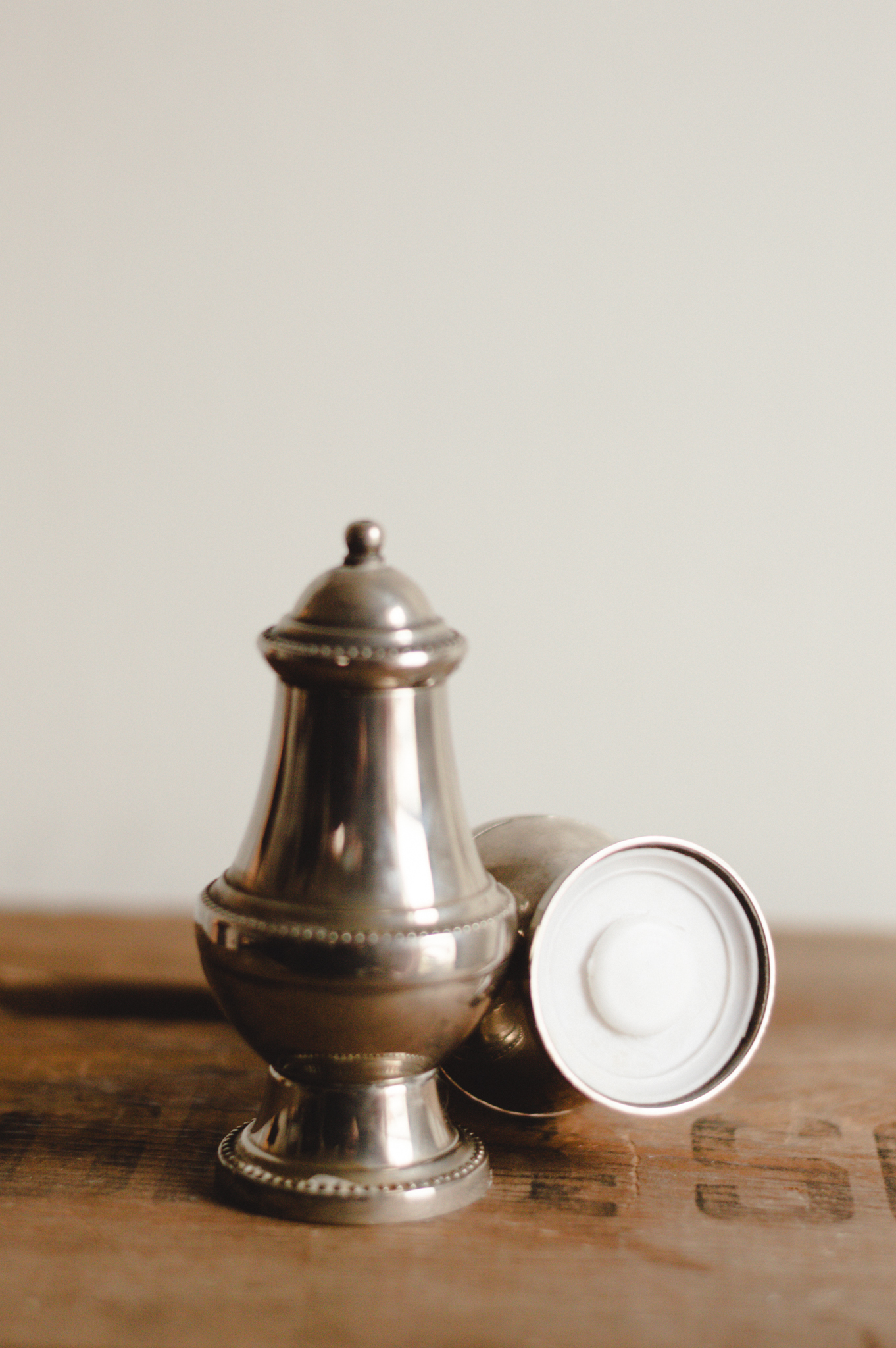 Antique-inspired, silverplated salt and pepper shakers. Enchanting and functional – two of our favorite things!